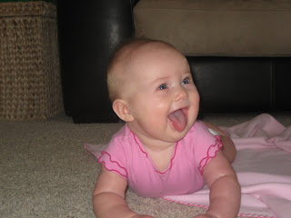 She's growing up so fast I can't stand it. But at the same time its SO MUCH FUN to watch her and Kenzie interact the bigger she gets. They both love each other SO much. Right now they can't do much else besides yell and laugh at each other (meaning both yelling "AAAAAAAAHHHHHH!" and laughing their heads off.) And Kenzie likes to tackle or "hug" her every chance she gets. Its so much fun! And we're learning that Brinley is one tough cookie. :)